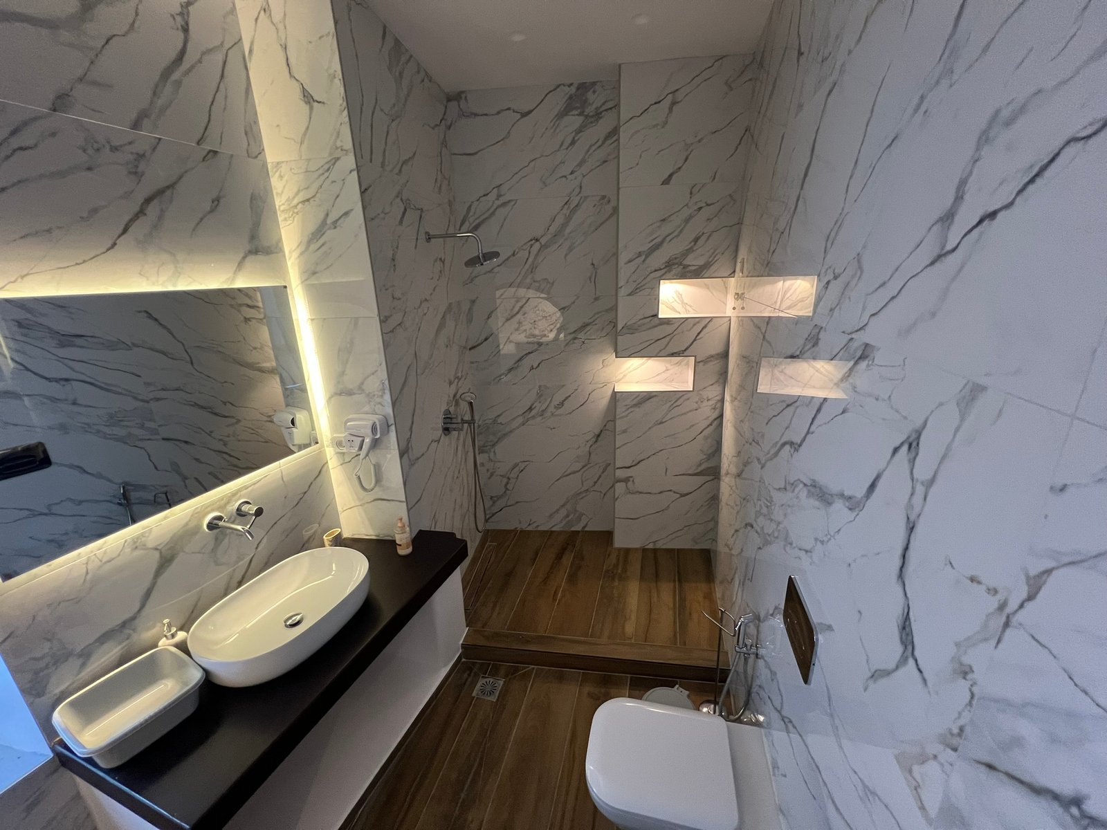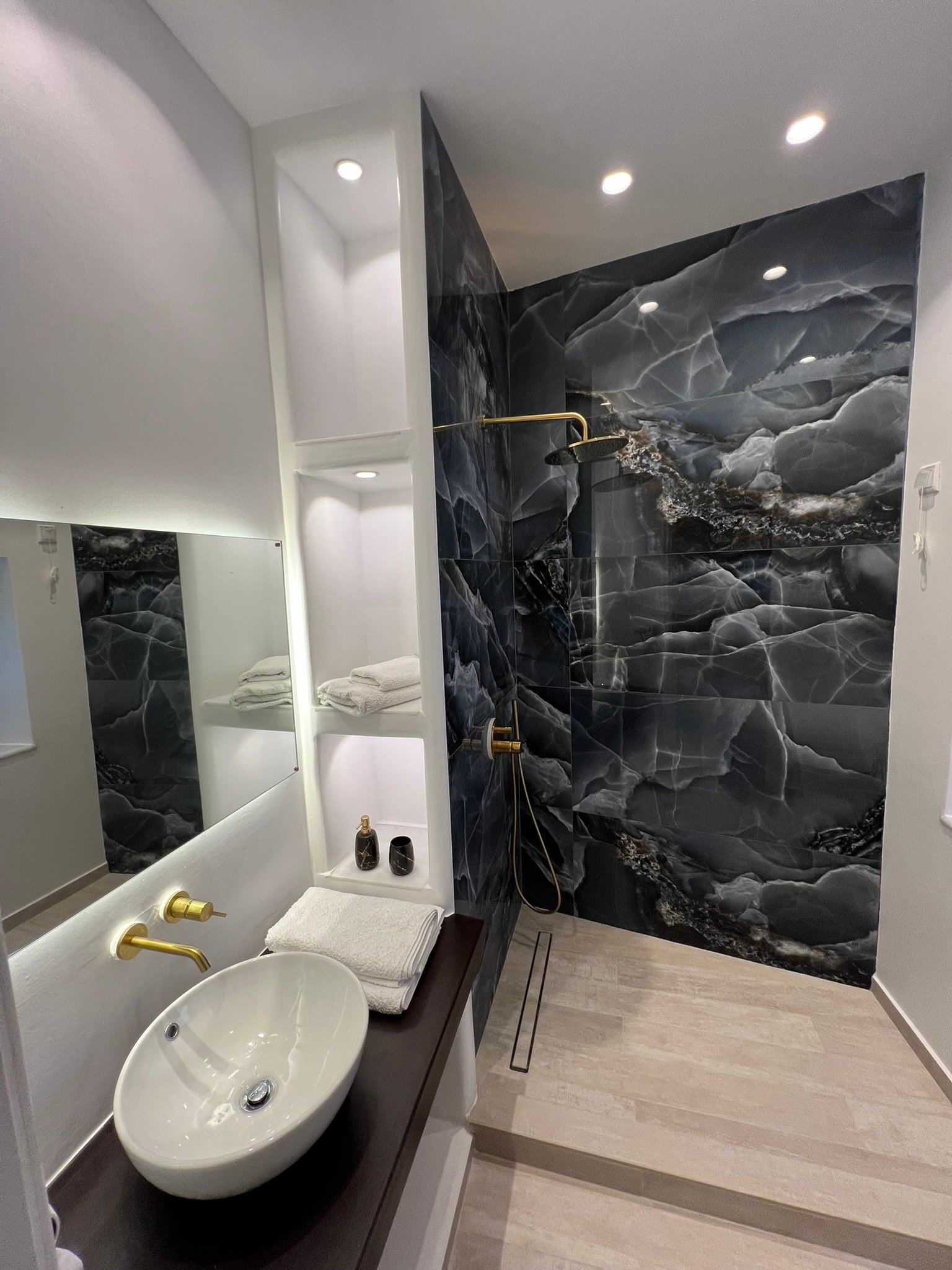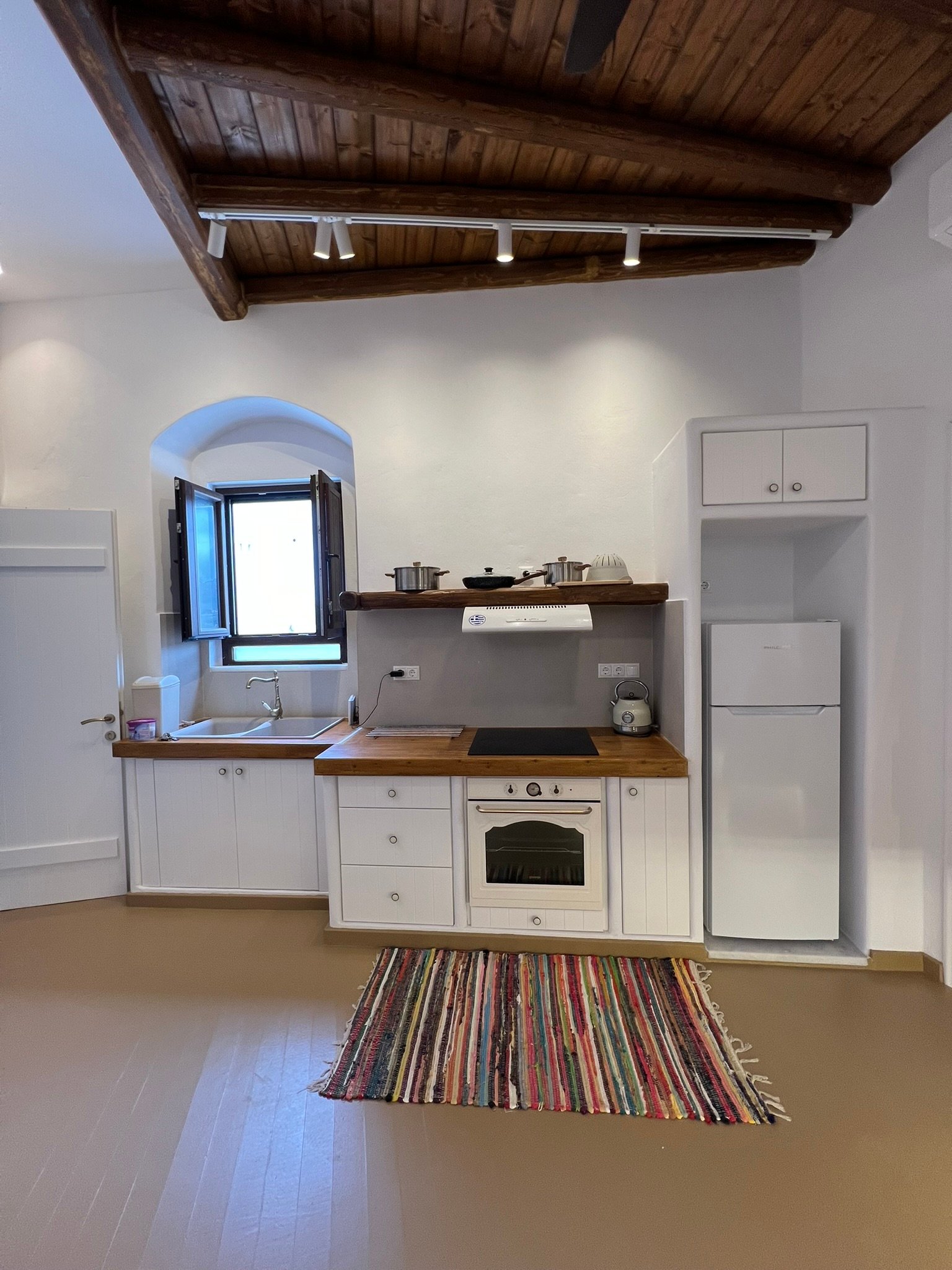 A spacious and lightful appartment accessed by the main entrance and next to the main hall of the property and the staircase to the magical terrace and the breathtaking view. Serves the utmost potential of accomodating a historical building and enjoying the ease of the present !