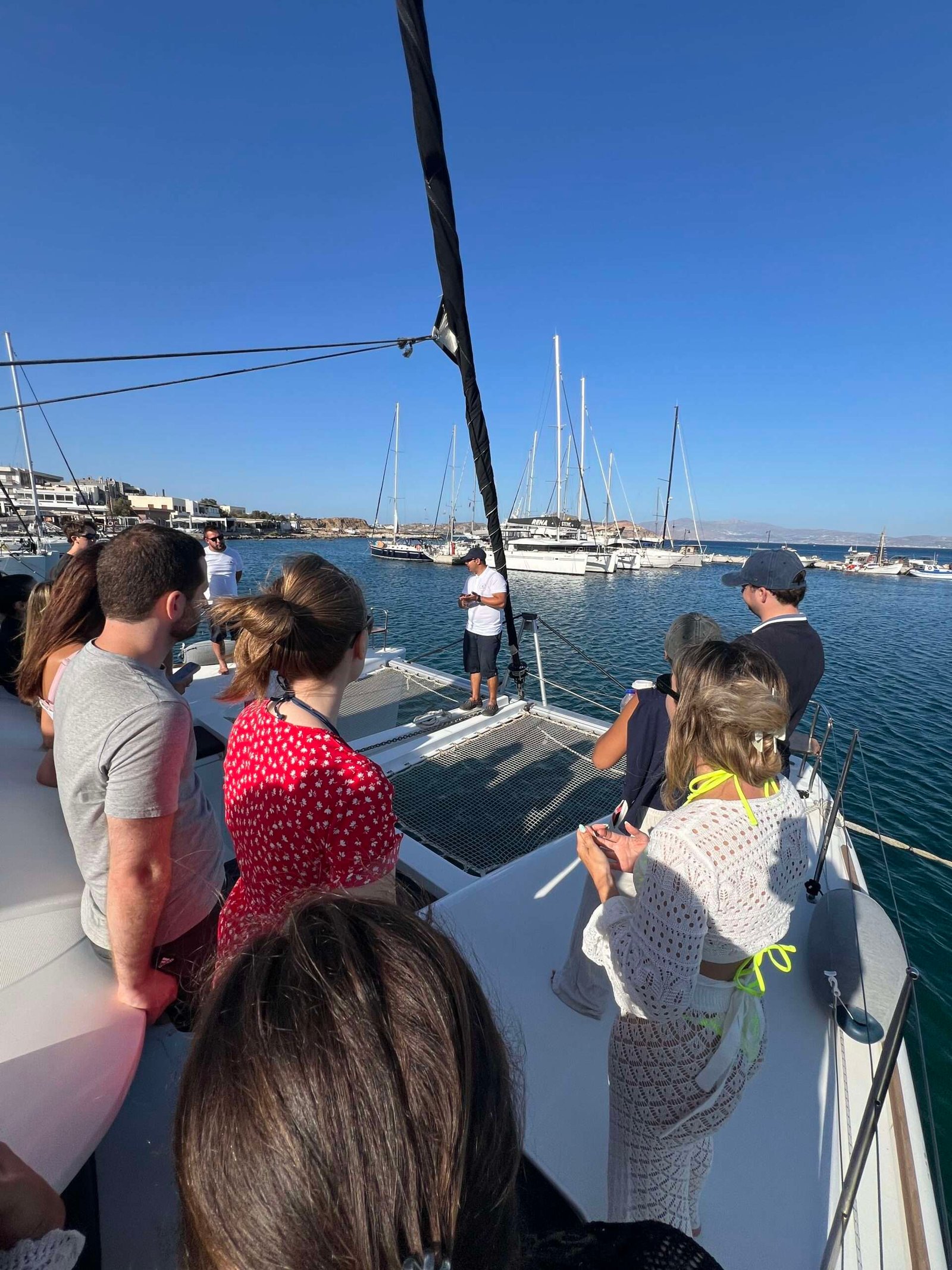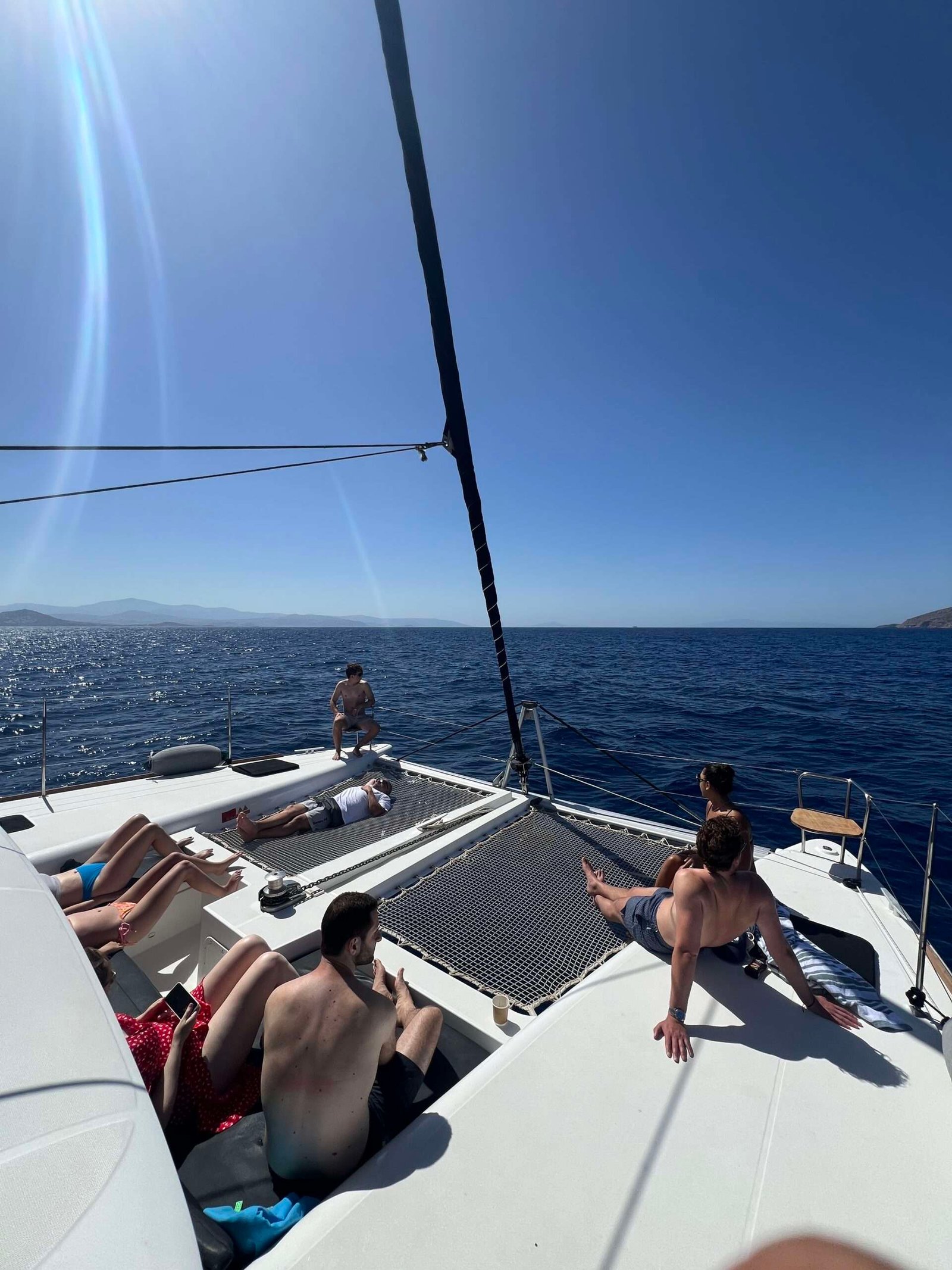 Set sails with the most complete yachting experience of the island . Ride the Aegean with the Lagoon 450 Flybridge , the most impressive , comfortable and big catamaran of the marina of Naxos, with plenty of spaces to relax and enjoy the mix of sea , sun and sailing.