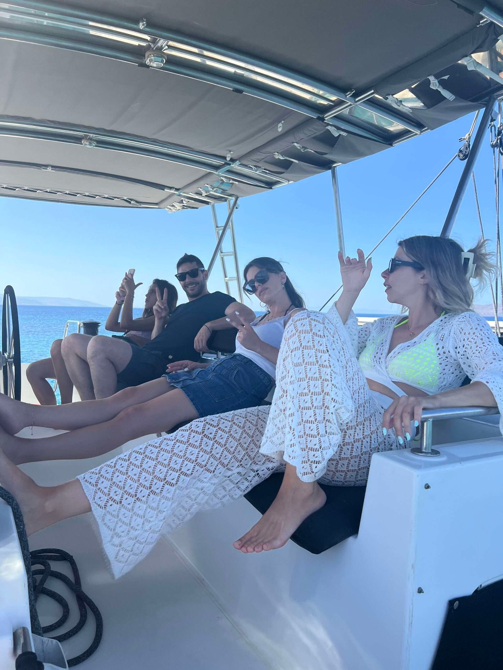 The tour offers coffee , water and pastry or cake for a good day start but the lunchtime offers a great MOUSAKA ! with feta cheese and Greek Salad, a meal that you will enjoy in the many unique spots of the catamaran along with the greatest views of Greece.